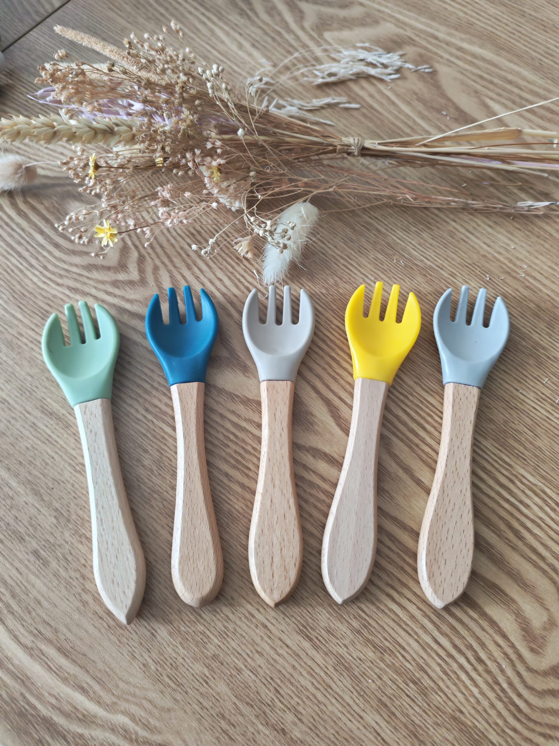 embout en silicone alimentaire et manche en bois de hêtre vernis bio .